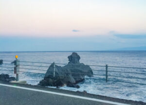 大川温泉地はどこだろうと思う方は、海岸に海に向かって遠吠えしてるような「奇岩・ライオン」の姿をした奇岩があります。